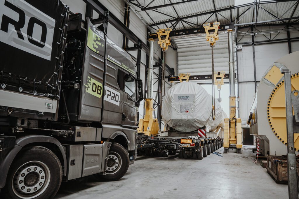 Pierwszym etapem był transport z portu rzecznego w Opolu do naszej hali magazynowej, gdzie turbina została rozładowana na „elephant foot”, a generator przy pomocy Gantry Crane. Po kilku miesiącach rozpoczęły one swoją ostatnią podróż do miejsca przeznaczenia.