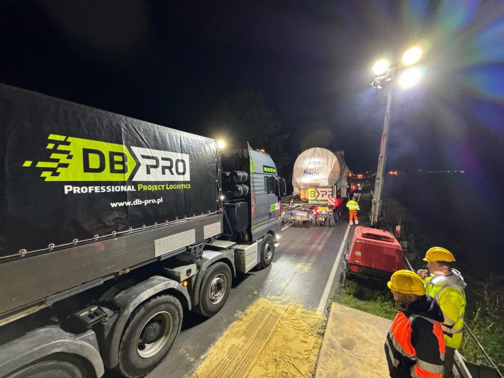 Trasę o długości ok. 200 km pokonaliśmy w 5 nocy. Na trasie przejazdu zdemontowaliśmy kilkaset znaków, kilkanaście latarni i sygnalizacji świetlnych, podnieśliśmy ponad 1100 przewodów elektrycznych, telekomunikacyjnych i światłowodowych, a także 3 trakcje kolejowe angażując przy tym 6 zestawów trakcyjnych. Był to już 3 transport takiego bębna papierniczego zrealizowany przez nas w tej relacji w przeciągu 7 lat.
